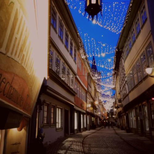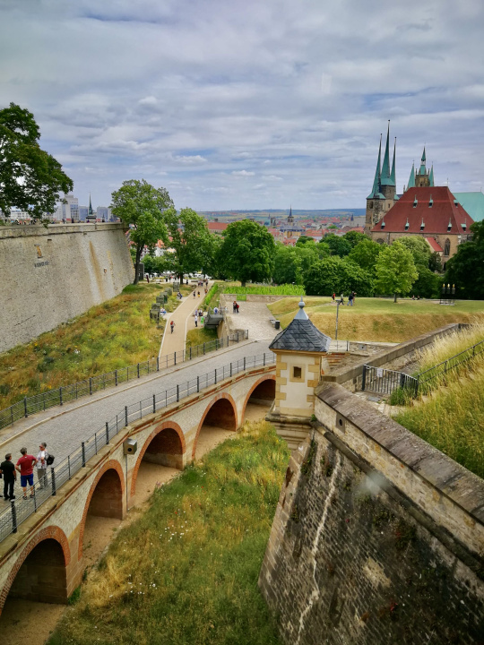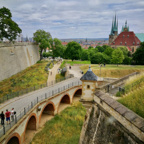 Der Rundgang beginnt auf dem Domplatz mit Blick auf Mariendom und Severikirche und führt durch das mittelalterliche Handels- und Wohngebiet der Stadt: vorbei an ehemaligen Waidspeichern, Kaufmannshäusern und Speicherbauten, durch enge Gassen der Altstadt bis zur Krämerbrücke und zum Fischmarkt.