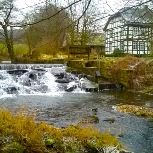 Der Blick geht über die Lenne hin zum Steinbruch des früheren Zementwerkes.