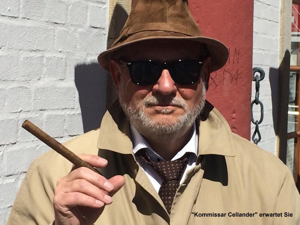 Begleiten Sie "Kommissar Cellander, pensionierter Kriminalbeamter, auf seiner kriminalistischen Zeitreise durch Straßen und Gassen von Celle. Er berichet von herausragenden Kapitalverbrechen aus der späten und jüngeren Vergangenheit; wie Mord, Geiselnahmen aus seiner Celler Dienstzeit sowie über Folter und Hinrichtungen im MIttelalter. Auch das "Celler Loch" am Ort des Geschehens werden Sie aufsuchen und die Hintergründe dieses aufsehenerregenden Falls erfahren.