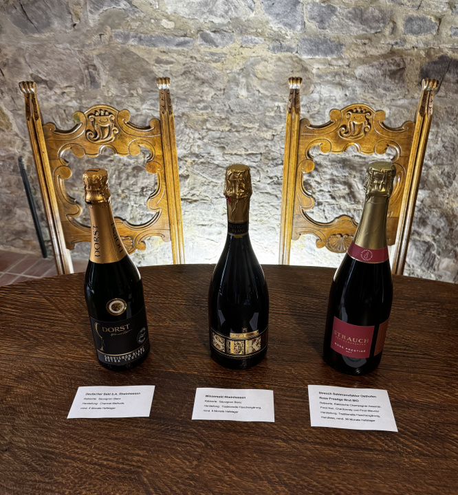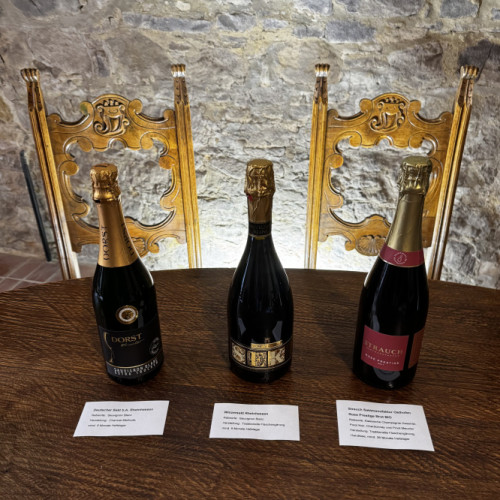 Zusammen verkosten wir 3 rheinhessische Qualitäts-Sekte und eine alkoholfreine Variante. Dazu kleine, korrespondierende Snacks.