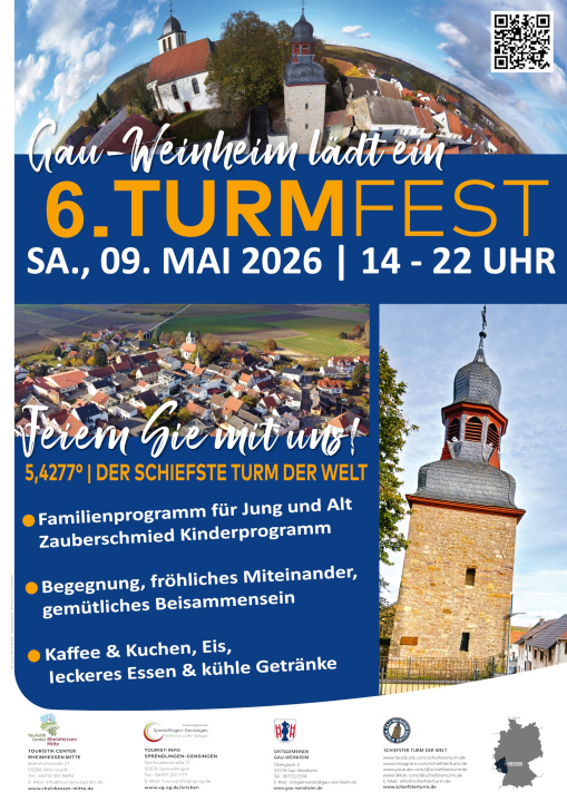 Gau-Weinheim erzielte am 11. September 2022 mit der 5,4277° Neigung des örtlichen Gemeindeturms den Weltrekord für den Schiefsten Turm der Welt.