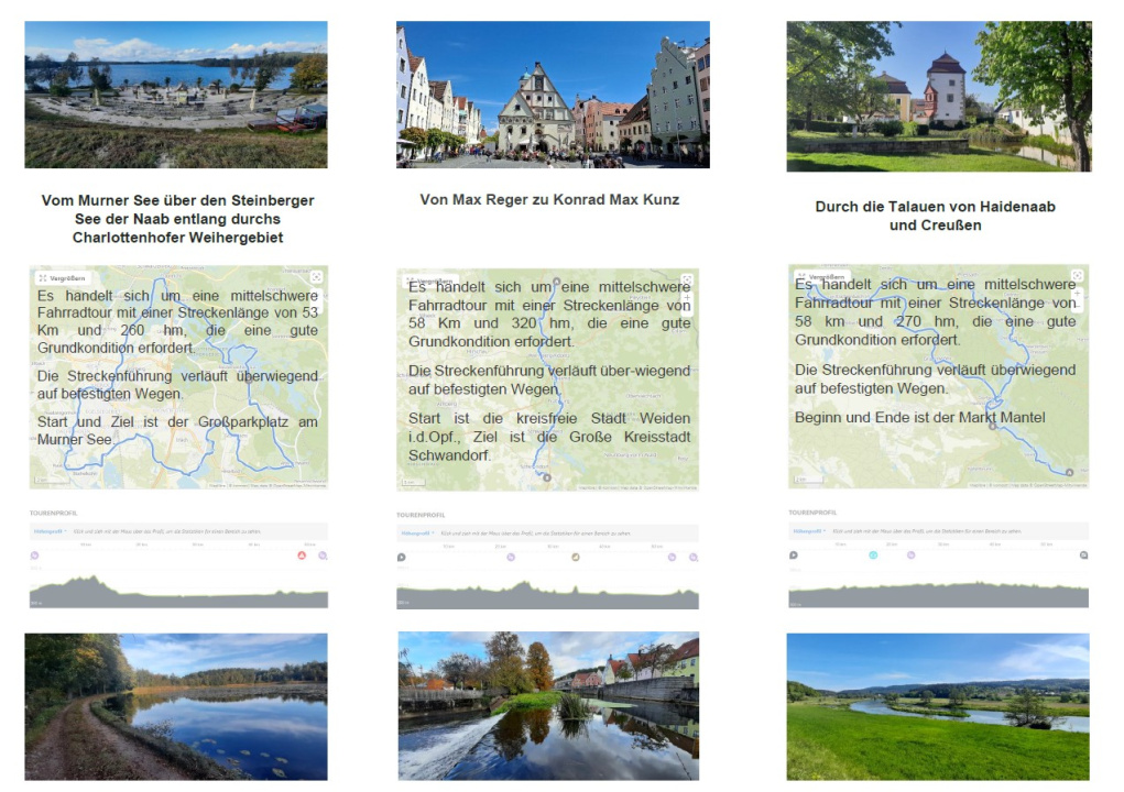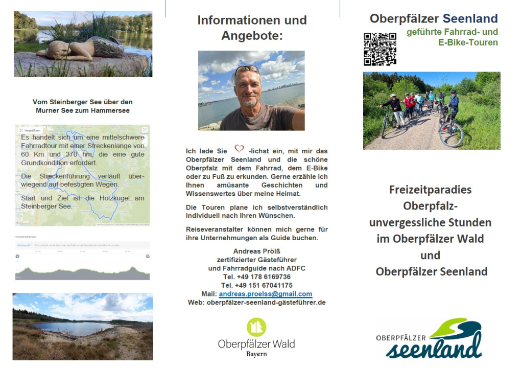 Planung und Durchführung von geführte Radtouren Tages- oder Mehrtagestouren, sowie Themenwanderungen. Ebenso biete Busbegleitung für für Vereine und Busunternehmen im Oberpfälzer Seenland an.
