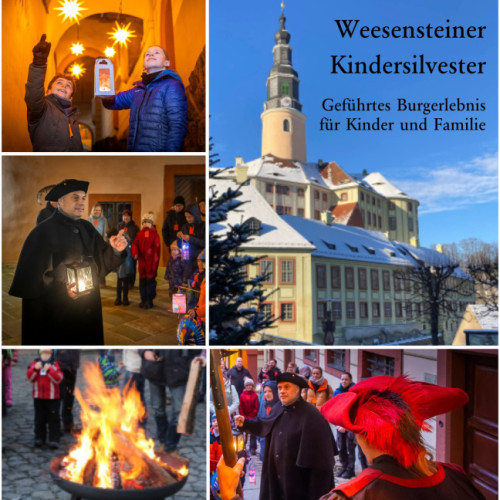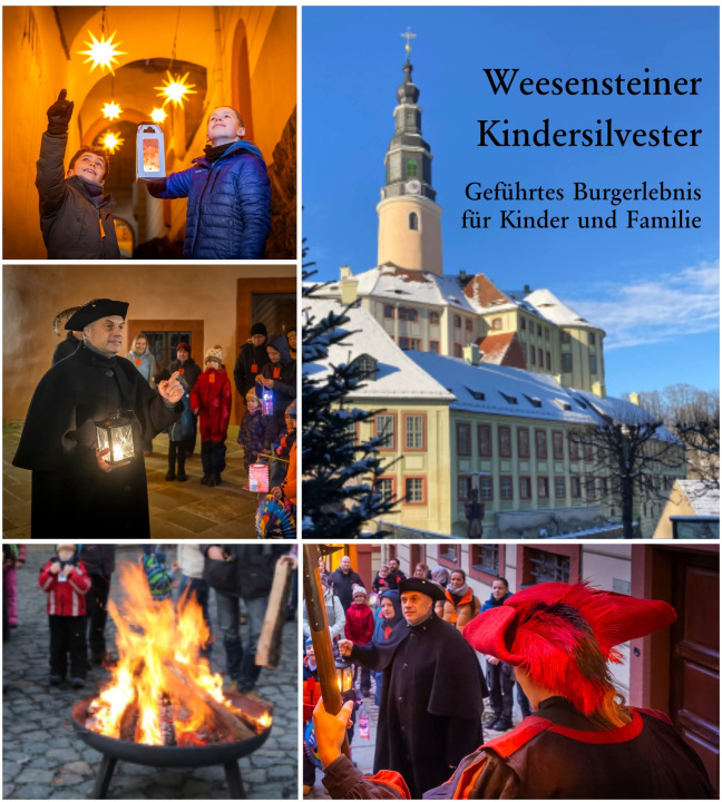 Als einige der wenigen Einrichtungen der Region bietet Schloss Weesenstein seit über 25 Jahren eine Kinderveranstaltung zu Silvester an. Stellt euch vor: Im ersten Jahrzehnt waren die Kinder auch noch so mutig, mit Lampions, in denen noch echte Kerzen steckten, allein(!) mit den Mitwirkenden durch das Schloss zu ziehen, während die Eltern es geschafft haben, eine Stunde freier Zeit ohne ihre Kinder (und sogar noch ohne Handy) am Feuer zu genießen. - Ich möchte Sie ermutigen zu überlegen, ob sie das ihren Kindern auch wieder zutrauen können? Das wird ihre Kinder stärken und als Eltern können Sie stolz darauf sein!