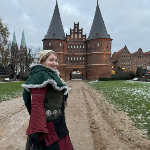 Um ca. 1400 verschlug es Margarethe Veckinchusen, geborene Witte, nach ihrer Hochzeit mit nur 15 Jahren von Riga nach Lübeck. Während ihr Mann Hildebrand auf Geschäftsreisen u.a. nach Brügge und Venedig unterwegs war, blieb sie mit den Kindern in der Stadt. Sie kann euch eine Menge über die Geschäfte der Hanse, die abenteuerlichen Reisen ihres Mannes und den Klatsch und Tratsch in Lübeck erzählen und nimmt dabei kein Blatt vor den Mund. Dazu gibt es ein paar Überlebenstipps für das Mittelalter und, falls Ihr Euch traut, auf Wunsch auch ein paar Gruselgeschichten aus ihrer Zeit