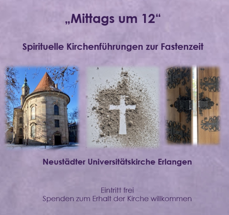 Mit Impulsen und Musik zum Innehalten laden wir Sie herzlich zu einer Auszeit ein. Sie erfahren Interessantes, ungewöhnliche Bräuche und Besonderheiten, eingebettet in die Geschichte Erlangens und unserem Erlanger Juwel, der Neustädter Universitätskirche.