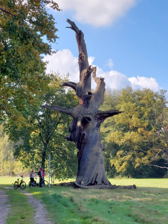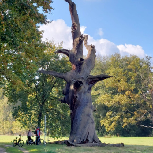 Danach geht es nach kurzer Pause mit Jägerlatein am „Brunftplatz“ durch naturnaher Wälder und Wiesen entlang der uralten Eichen am „Heiligen Gang“.