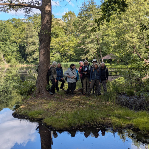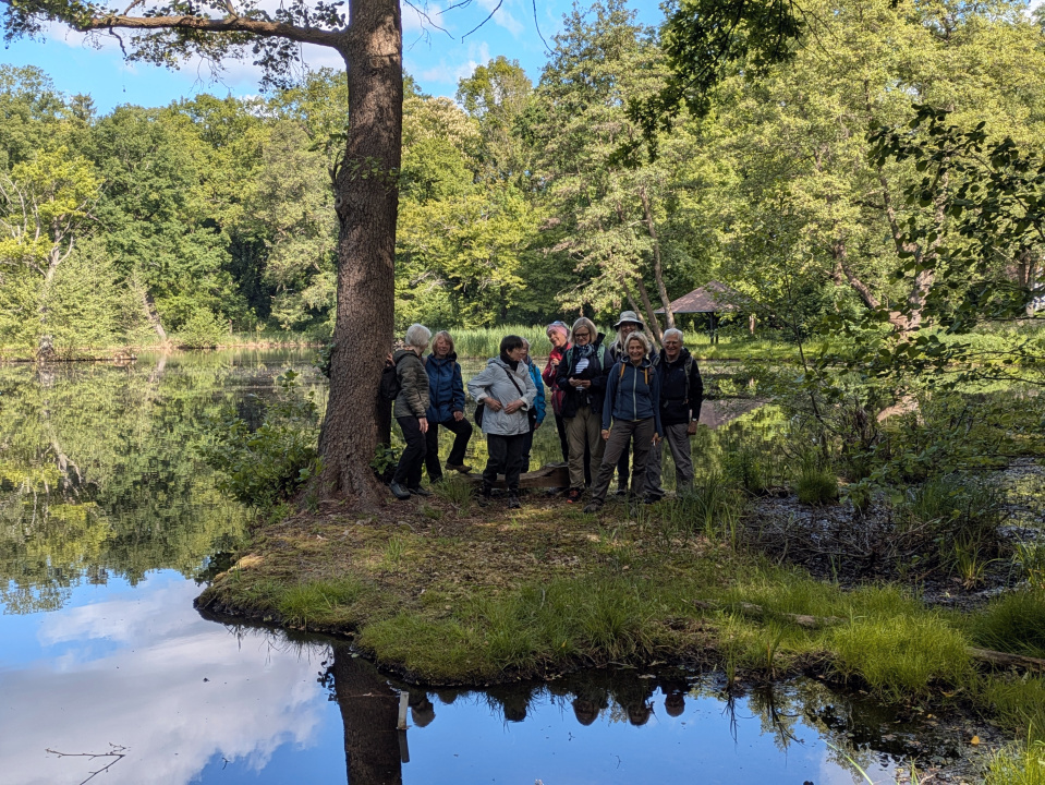Über den Damm der Spreewaldbahn erfahren wir einiges zur Bahn selbst und beobachten an vermoorten See´n seltene Vögel.