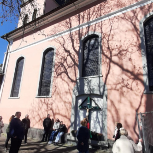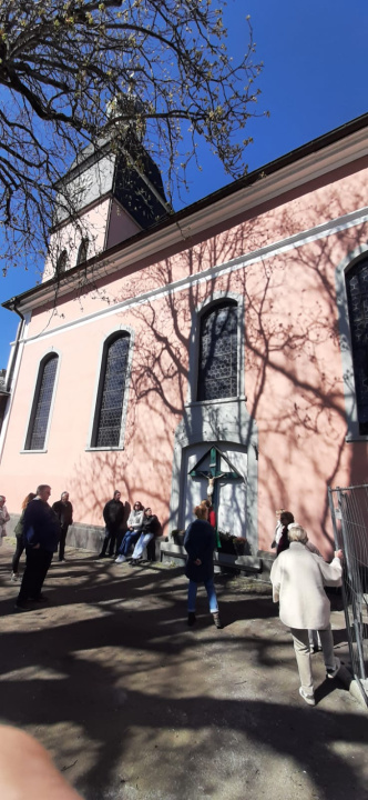 Über einem Zwischenstopp am Marktplatz geht es weiter auf den Kirchplatz der katholischen Kirche Kreuzerhöhung zu den unter Denkmalschutz stehenden „Halbmondhäusern“ und ihren Geschichten. Nach einer Umrundung der Kirche suchen wir die Stellen auf, an denen das ehemalige Pfarrhaus sowie das Hospital standen, um dann ins alte Unterdorf von Wissen einzutauchen.