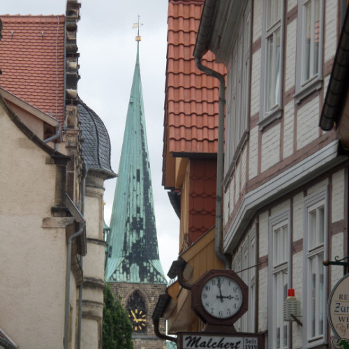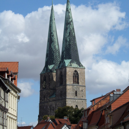 Nachmittagsführung, als öffentliche Stadtführungen durch Quedlinburg „Rundgang durch das UNESCO Welterbe von Quedlinburg“. Diese Stadtführungen werden durch die Quedlinburger Gästeführer organisiert und von dem Gästeführerverein Quedlinburg e.V. unterstützt. Am Nachmittag geht der Rundgang in die Neustadt von Quedlinburg, die Stadt der Ackerbürger. Das Stadtbild geprägt durch die alles überragende Schäferkirche, die Nikolaikirche mit ihren Doppeltürmen, umgeben von Handwerkerhäusern, lieblichen Plätzen und mächtigen Ackerbürgerhöfen. Aber auch alles überragende Stadttürme und Mauern gibt es am Rand dieser Siedlung die ihren Beginn im 12 Jahrhundert begründet. Auf dem Reißbrett entstanden, als Zufluchtsort der Landbevölkerung der umliegenden Dörfer, in den Schutz hinter der Mauern einer Stadt, entwickelte sich eine selbstbewusste Bevölkerungsgruppe, die der Altstadt nicht nach stand.