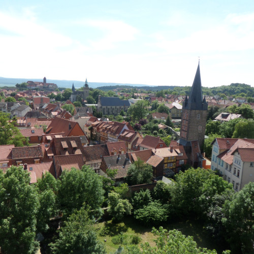 Ein Streifzug durch die Altstadt von Quedlinburg, durch die Gassen der 1100 jährigen Kaiserstadt, an Fachwerkgebäuden entlang, auf den Spuren vieler Quedlinburger Persönlichkeiten, wie der ersten deutschen Ärztin Dorothea Cristiane Erxleben, dem Dichter Friedrich Gottlieb Klopstock, dem Pädagoge Johann Christoph Friedrich Guts Muths und seinem Lieblingsschüler dem Geograph Carl Ritter. Der Rundgang geht weiter über den Sagenhaften Finkenherd, dem Ort der Königsantragung an den ersten deutschen König Heinrich, sowie der wechselvollen Geschichte des Frei-weltlichen Stifts auf dem hohem Schloßberg und die Bewahrung des Welterbes der UNESCO in Quedlinburg.