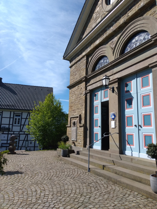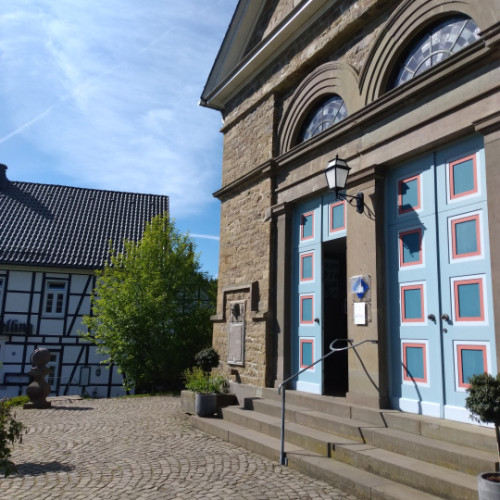Ich möchte mich zusammen mit Ihnen auf die Spurensuche begeben, unter welchen Umständen die Gemeinde Delling zu dem geworden ist, was sie heute darstellt. Da war ein Lehnsherr der Gemeinde Olpe, der sich gegenüber der Reformation zum Ende des 16. Jahrhunderts sehr aufgeschlossen gab und in seiner Patronatskirche Olpe einen evangelischen Prediger einsetzte. Die evangelische Gemeinde fand Gefallen am neuen Glauben und einige Gemeindemitglieder wollten nicht mehr zum katholischen Glauben zurückkehren als der Sohn dieses Lehnsherren in der Patronatskirche Olpe wieder in einen katholischen Pfarrer einsetzte. Doch da bot Freiherr Breidenbach, der das damals leerstehende Freigut Delling besaß, der neuen Gemeinde Kirchenasyl. So entfaltete sich im heutigen Gemeindehaus eine autarke Kirchengemeinde - zunächst mit Pfarrstelle im Freigut. Später kaufte die Gemeinde dieses Haus. Im 18. Jahrhundert entschloss man sich, ein benachbartes Schulhaus für die Kinder der Kirchenmitglieder anzubauen. Das Ziel bestand darin, die Bauern der Gemeinde lesen und schreiben lernen zu lassen, so dass aus ihnen Kaufleute werden konnten mit der Möglichkeit, sich aus der Leibeigenschaft zu lösen und Handel zu betreiben. In der Junkermühle im Tal konnte man von nun an Schwarzpulver herstellen und verkaufen. Die Gemeinde wünschte sich eine eigene Kirche (verwirklicht nach Schinkel !) samt Friedhof für die Verstorbenen. Mit dem erwirtschafteten Vermögen und durch geschickte Verhandlung gelang es der Gemeinde schließlich, diese Wünsche umzusetzen. Wir schauen uns vor Ort die besagten Gebäude und den Friedhof an; machen anschließend eine Rundwanderung um Delling herum zu Martin Luthers Reformationsideen.
