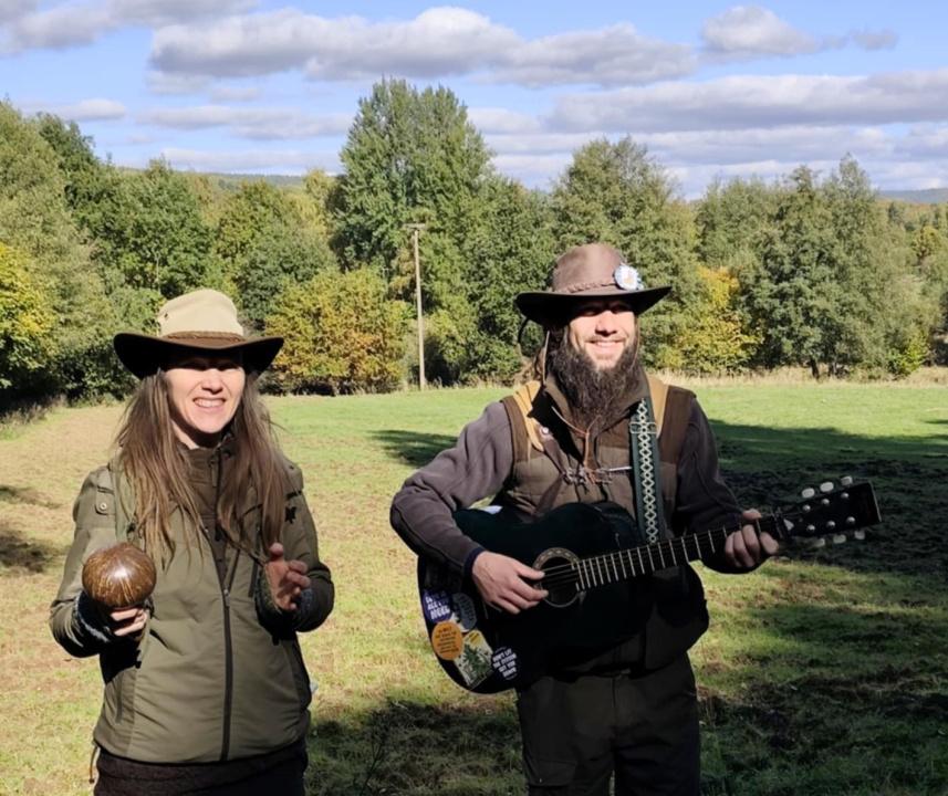 Mit der Gitarre auf dem Rücken und der Rassel in der Hand - unterwegs mit eigenen Liedern, die anregen & berühren möchten, um sich gemeinsam den Fragen unserer Zeit und unseres Mensch-seins zu stellen & auszutauschen. Lieder über Natur & Kultur, Frieden & Krieg, Liebe & Gesellschaft begleiten unsere Wanderführungen.