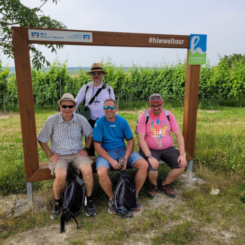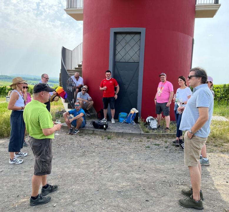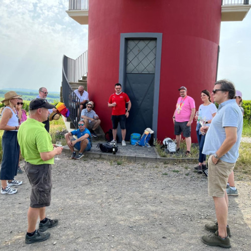 Erleben Sie eine geführte, unterhaltsame Weinwanderung ab dem Burgunderturm in Wörrstadt mit dem Kultur- und Weinbotschafter Wolfgang Petry. Entlang der Hiwweltour Neuborn wandern wir vom Aussichtsturm Burgunderturm zunächst zum Rastplatz „Zur schönen Aussicht“ und weiter zum einzigartigen Panoramablick am Tisch des Weines, nach Rommersheim und zurück. Unterwegs genießen Sie eine Weinprobe mit 5 lokalen Weinen. Während der Tour erfahren Sie spannende Geschichten, Informationen, Gedichte und Anekdoten über Rheinhessen und den Weinbau. Ein unvergessliches Erlebnis voller Genuss, Natur und Kultur!