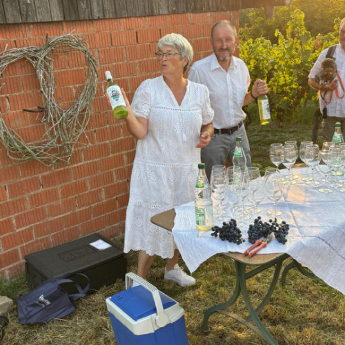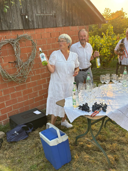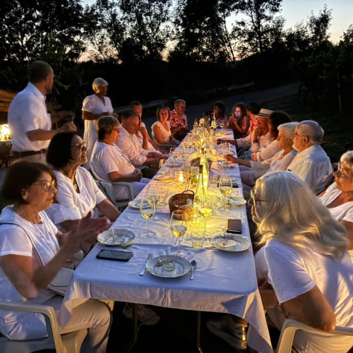 Sommerliche Weinprobe mit weißen Weinen vom Weinkonvent Dürrenzimmern und den passenden Häppchen unterm Sternenzelt. Helle Kleidung geben dem Abend das gewisse Etwas.