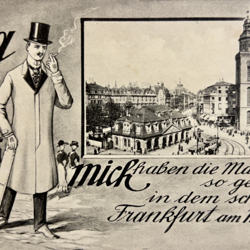 „Und nun stehen wir an der berühmten Zeil. Niemand wird dieser Zeile von Palästen seine Bewunderung versagen können. Was der Erfindungsgeist unseres industriellen Jahrhunderts für den Luxus nur immer geschaffen hat, finden wir hier in glänzenden, nicht selten prächtigen Läden zur Schau gestellt. Schlösser, wahre Fürstenwohnungen, sind zur Aufnahme der Fremden bereit.“