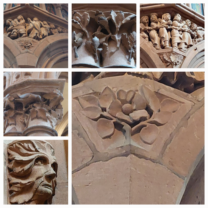 Fratzen & Figuren der Marienkirche flüstern von Kapitellen, Konsolen und Portalen.