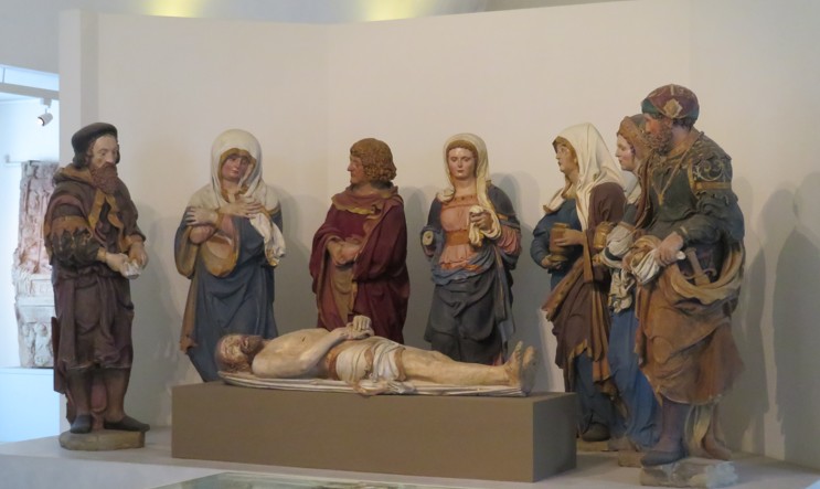 Die für die Aufstellung in der Liebfrauenkirche geschaffene imposante Beweinungs-Gruppe vom Grabaltar des Christoph von Rheineck hat in dem halben Jahrtausend ihrer Existenz viel in wörtlichem Sinne "bewegte Geschichte" hinter sich und versteckt sich nun fast ein wenig im Obergeschoss des Museums ... ein Grund mehr, sich ihr einmal ausführlicher zu widmen.